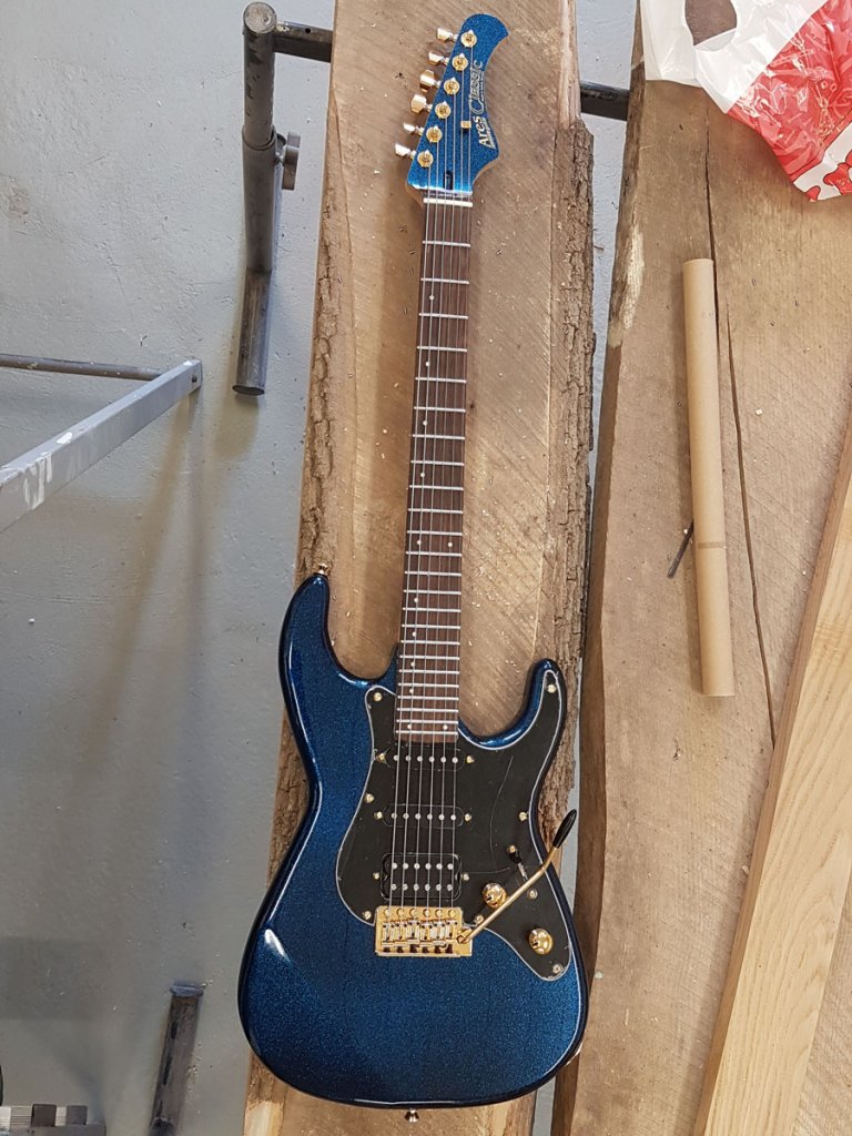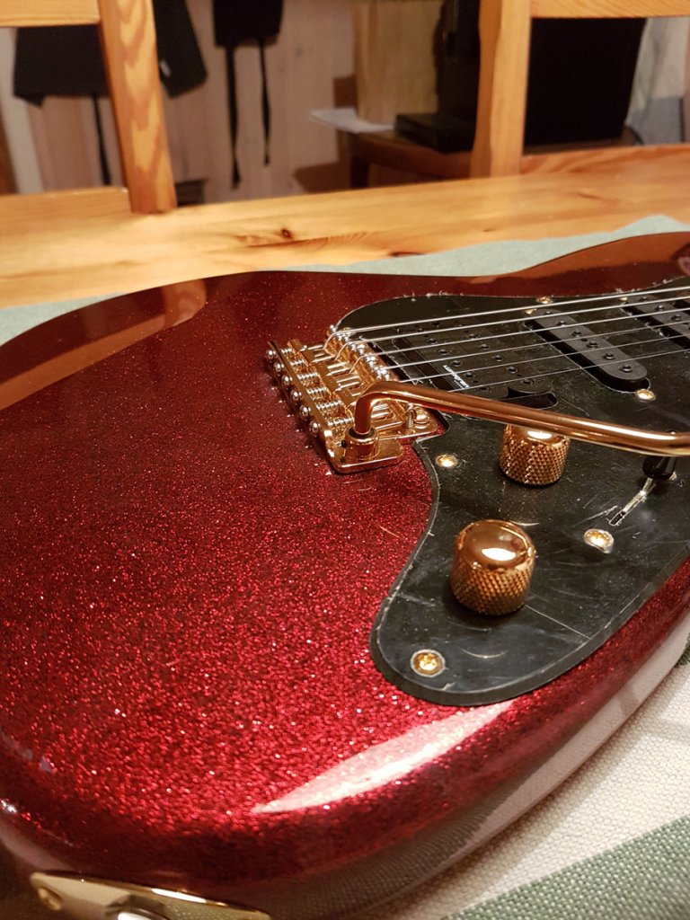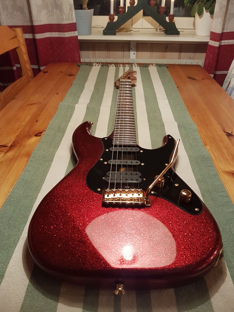 Both bodies and necks are made in our facility in Vallvik. This new Classic series (since 2017) has a special neck joint, where the neck is forced into the body, direction bridge/tremolo, to enhance the overtone spectrum and sustain. The guitars sing nice and clear, build up a marvelous tone and sustain that make everyone happy.