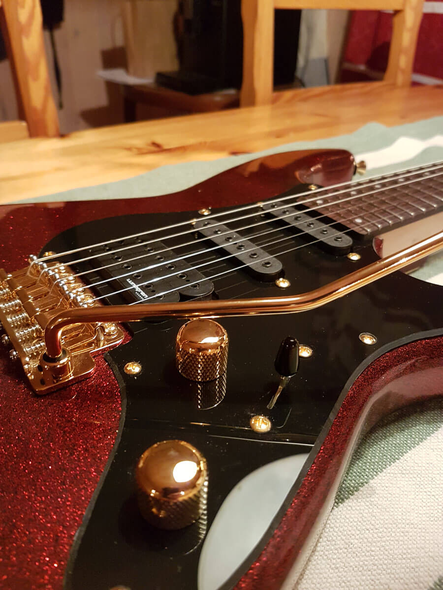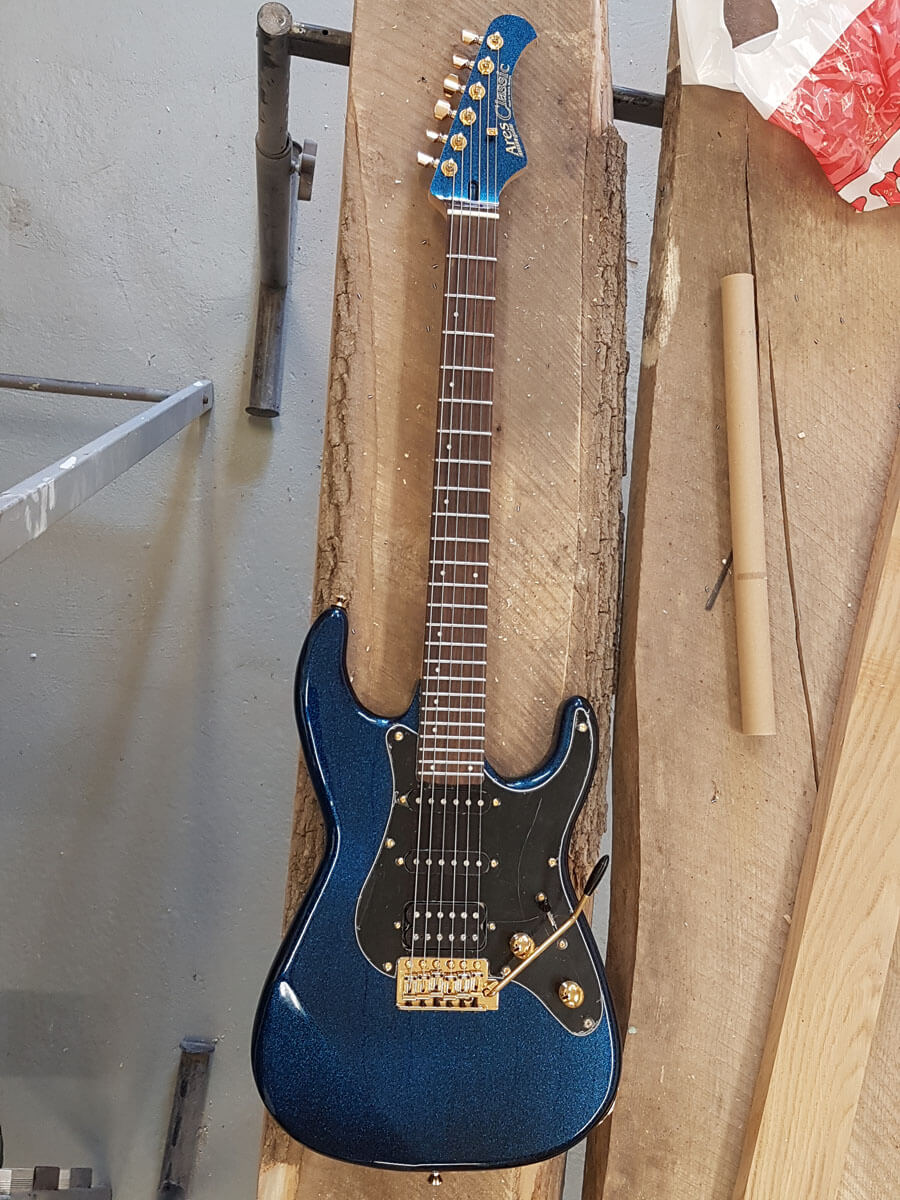 Both bodies and necks are made in our facility in Vallvik. This new Classic series (since 2017) has a special neck joint, where the neck is forced into the body, direction bridge/tremolo, to enhance the overtone spectrum and sustain. The guitars sing nice and clear, build up a marvelous tone and sustain that make everyone happy.